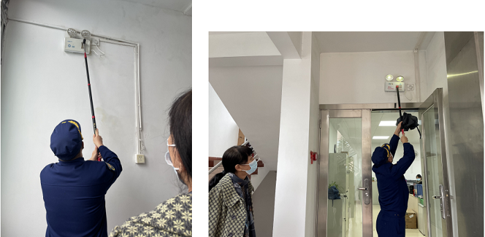 3. 抽查科研樓應(yīng)急燈、感煙探測(cè)器的運(yùn)行情況,還做了消防未端試水測(cè)試。