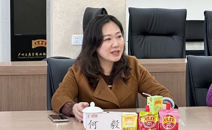 何毅副書記首先代表王老吉藥業對長汀縣政府代表團一行的到來表示熱情歡迎,并對廣藥集團、王老吉藥業的具體情況進行了介紹。她指出,王老吉品牌始創于1828年,品牌價值高達1080億元。王老吉藥業作為廣藥集團大健康板塊的重要成員,堅持深耕王老吉涼茶市場,不斷研發新產品,煥發中華老字號品牌新活力。其中,刺梨系列產品從研發到上市,再到現如今的飛速發展,體現了廣藥集團響應鄉村振興、落實真正幫扶的初心。她還邀請來賓們品嘗王老吉涼茶、刺檸吉潤喉糖、龜苓膏等產品,并從材料選擇、科技創新、制作工藝等方面介紹了王老吉系列產品的創新特色,得到了客人們的一致好評。