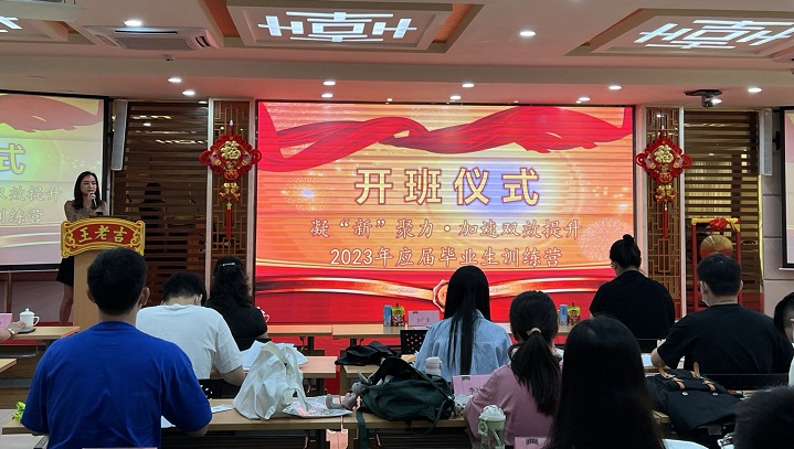 活動(dòng)的最后,在各位領(lǐng)導(dǎo)及應(yīng)屆生的見證下,何毅、李冬青、王一維等領(lǐng)導(dǎo)共同敲響了開班大吉的鑼鼓,并宣布本次應(yīng)屆畢業(yè)生訓(xùn)練營正式開始!