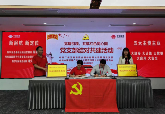 “七一”前夕,王老吉藥業第四黨支部與中國聯通荔灣區分公司支部開展了一次很有意義的共建活動,旨在推進黨建與業務工作深度融合,為共建共贏發展開辟新道路。