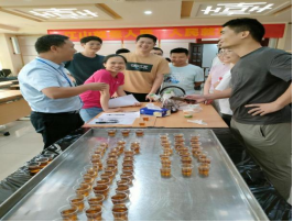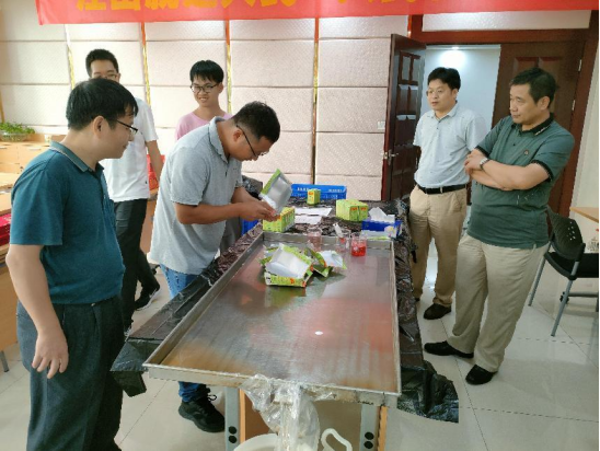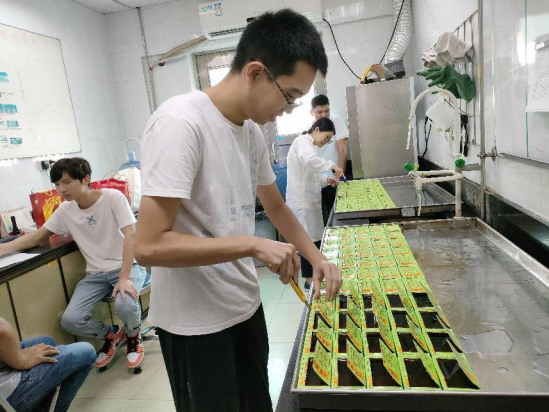 看!打檢開包試驗速度比拼也已拉開帷幕了,此過程為涼茶產品批次質量和貨架期質量驗證最重要的檢測程序之一??矗簠①愡x手們對著一盤55包的樣品,手拿利刀,出手要快,姿勢要帥,在這基礎上還是要安全快速才最為重要。在這打檢開包比賽中,比賽者謹記“一橫二豎三角度,四刀五邊六力度”的口訣,憑借著獨一無二的訣竅,看誰能脫穎而出,靠的還是技術活啊!只見一快刀手,55包的樣品在不到1分半的時間內,一包包充滿香氣,晶瑩剔透的涼茶已呈現在評委的眼前。此時此刻,或許評委品的不是涼茶,更多的是驚嘆其精湛的技術吧。經過激烈比賽,由食品質量部的廠部同事和OEM品控駐點包攬了前三名,他們分別是第一名林灼勤,第二名葉揚威和胡素輝,第三名鄭穎俊、鐘飛虹和成偉杰。
