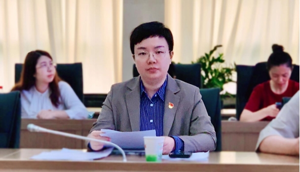 紀委委員李冬青主持會議、紀委委員陳麗專領學“第一議題”、紀委辦主任曾錦秀傳達文件