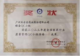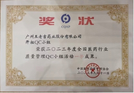 研究所發表的《提高潤喉糖濃縮汁的生產效率QC成果,榮獲2023年廣州市質量管理小組成果發表一等獎、廣東省輕工業成果發表金獎、44次全國醫藥行業質量管理小組成果發表一等獎最佳發表獎。