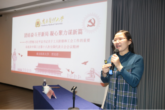 本次培訓特別邀請到了南方醫科大學馬克思主義學院教授,碩士研究生導師,法學博士,廣東省習近平新時代中國特色社會主義思想研究中心特約研究員曾漢君老師作《團結奮斗開新局 凝心聚力謀新篇——學習貫徹習近平總書記關于工人階級和工會工作論述和中國工會第十八次全國代表大會會議精神》專題授課。她由淺入深地講解了習近平總書記關于工人階級和工會工作的重要論述摘編及中國工會第十八次全國代表大會和省委、市委常委會會議精神,推動工會工作創新發展,多維度、多角度為大家講授當前工會工作的新理論、新實踐,以增強職工代表的履職能力。