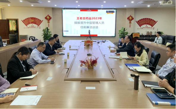 1213,王老吉藥業召開晉升人員任前廉潔談話會議,廣藥集團總經理助理、公司黨委書記陳偉平,公司黨委副書記、工會主席何毅,紀委書記李玉婷對新晉升人員進行任前廉潔談話,黨委辦公室、組織部及紀委辦公室工作人員列席會議。