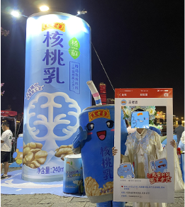 王老吉核桃乳的巨型罐子美陳一經搭建即成為窯埠古鎮的新地標,吸引了眾多游客的目光。這個巨型罐子不僅展示了王老吉品牌、核桃乳產品的形象,也成為了游客拍照留念的熱門背景。