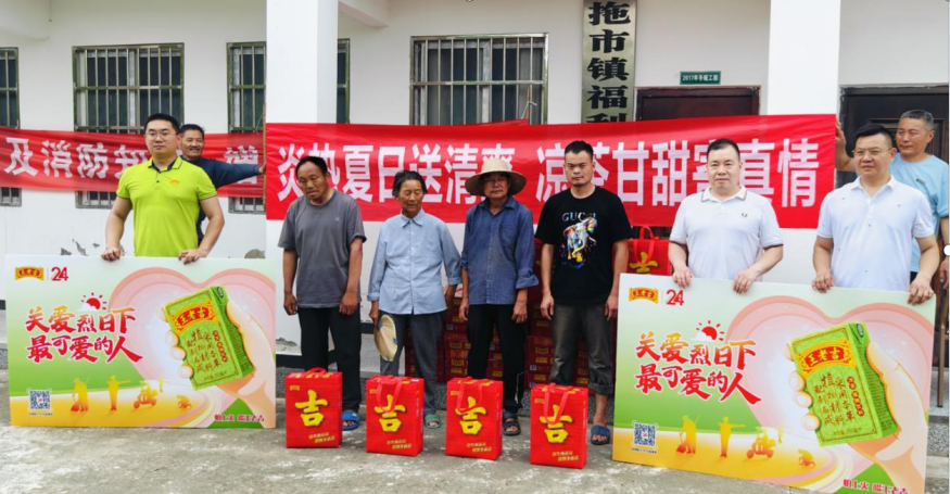王老吉藥業聯合湖北天門市拖市鎮鎮政府為一線辛勤工作的環衛工人和公安民警,電力搶修工人,醫院白衣天使們送清涼