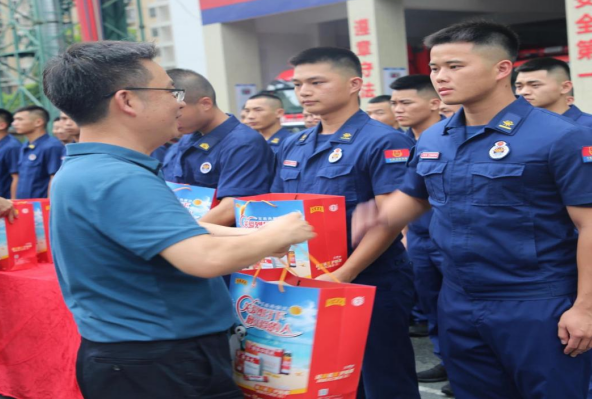 王老吉藥業聯合汕尾市總工會、汕尾市醫藥行業工會、汕尾市國榮廣信藥業連鎖店有限公司為炎炎夏日中堅守崗位的消防一線人員送去關愛與清涼。