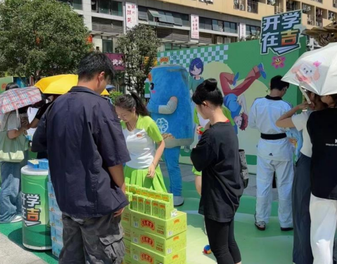 王老吉食品華中湘南辦聯合菜鳥驛站高校區校內站點聯合開展了驛站廣宣發布,學院社團招新活動互動
