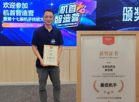機“首”智造營暨第十七屆機手技能大賽在僅一公司舉行,共計12家藥企受邀參加。我司選派2名維修技術(shù)骨干參賽,其中李華師榮獲了“最佳機手”稱號,同時為我司獲得3千元的備件儲備金。 -