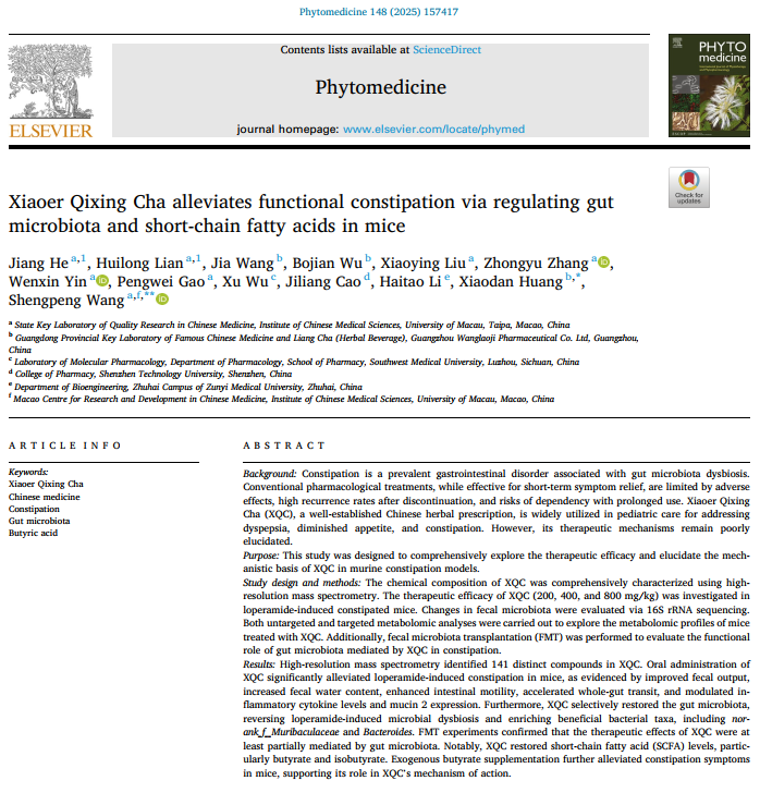 王老吉藥業小兒七星茶顆粒科研成果榮登國際SCI期刊《Phytomedicine》