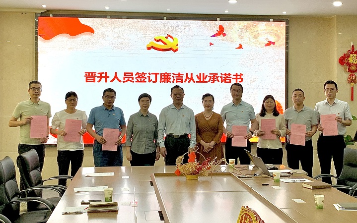 王老吉藥業(yè)組織召開2023年晉升人員任前廉潔談話會(huì)議,公司黨委書記陳偉平,黨委副書記、工會(huì)主席何毅,紀(jì)委書記李玉婷對2023年上半年12名新晉升人員進(jìn)行任前廉潔談話 -